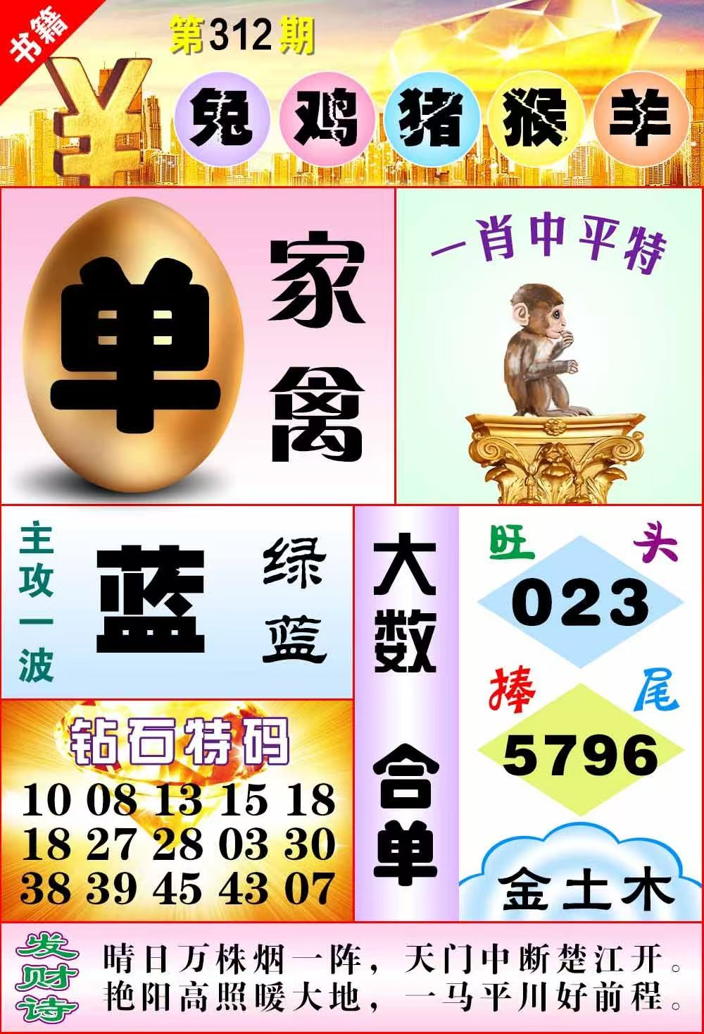 | 308期:发财单双【双數双數】开:猴34准 |