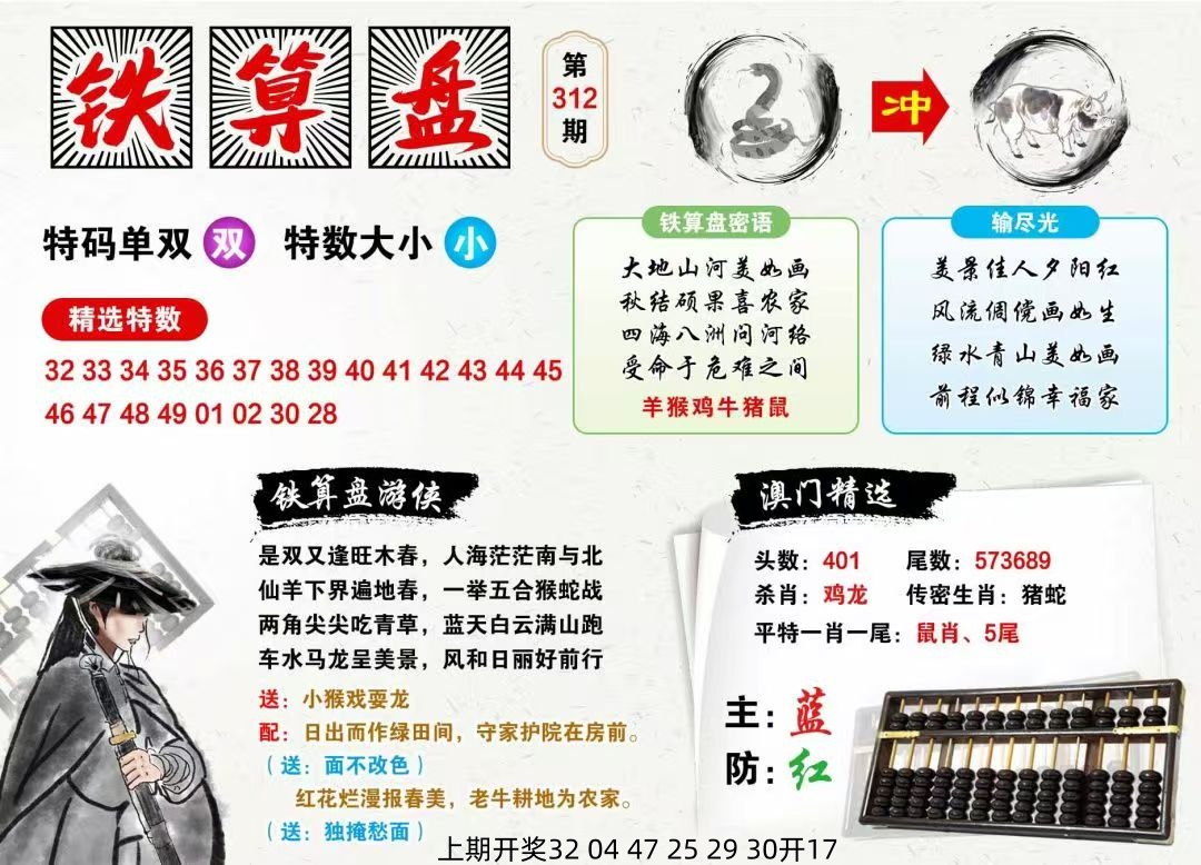 | 312期:五肖 | 龙羊狗牛鸡 | 开:准00 |
